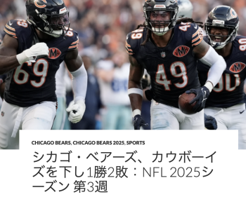 << 2025年9月22日投稿:画像は記事にリンク >> シカゴ・ベアーズ、カウボーイズを下し1勝2敗:NFL 2025シーズン 第3週
