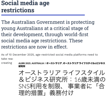 豪政府は、子供が禁止対象外のサービスに流れるのは「想定内」とし、必要に応じて対象を拡大する方針を示すが、AFR紙は専門家の意見を引用し、「モグラたたきのようなアプローチだ」と指摘している。”(出典:讀賣新聞オンライン)