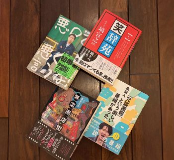 l to r:(上段)ウエストランド井口浩之『悪口を悪く言うな!』、ナイツ塙宣之『笑辞苑』(下段)酉島伝法『無常商店街』、泉麻人『「冗談画報」という楽しい番組があった』