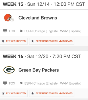 すぐさま第16週でホーム Soldier Fieldに場所を移しグリーンベイ・パッカーズを迎え撃つので、