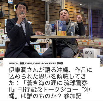 << 2025年11月27日投稿:画像は記事にリンク >> 伊東潤さんが語る沖縄、作品に込められた思いを傾聴してきた:『蒼き海の涯に 琉球警察 II』刊行記念トークショー〝沖縄〟は誰のものか? 参加記