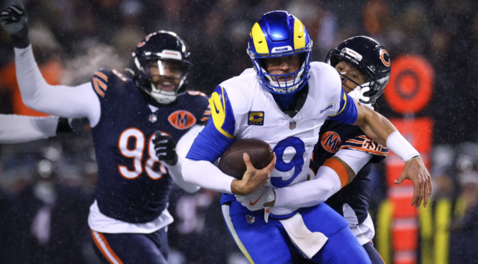 脅威さ浮き彫りで、実際(ディビジョナル) Los Angels Rams:ロサンゼルス・ラムズ戦でも誰もが敗戦を覚悟したであろう中、またしてもCaleb Williamsの超人的プレーで同点に追いつき、本拠地Soldier Fieldを熱狂させるも