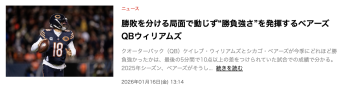 > クオーターバック(QB)ケイレブ・ウィリアムズとシカゴ・ベ > アーズが今季にどれほど勝負強かったかは、最後の5分間で10点> 以上の差をつけられていた試合での成績で分かる。2025年シー > ズン、ベアーズがそうした試合で3勝3敗を記録した一方、同じ > 状況に立たされた他チームの成績は3勝151敗にとどまって > いた。