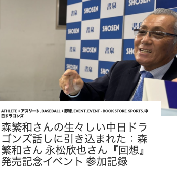 森繁和さんが、NPBでの現役選手引退後、コーチ、監督、シニアディレクター(一部、評論家時代を含む)として中日ドラゴンズの日々を振り返った『回想』を読了。