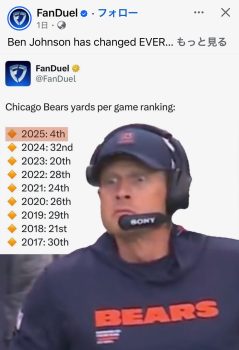 昨シーズンからは想像し得ぬスタッツを叩き出していた Chicago Bears:シカゴ・ベアーズの9戦目は、 ホーム Soldier Field に New York Giants:ニューヨーク・ジャイアンツを迎えての一戦。
