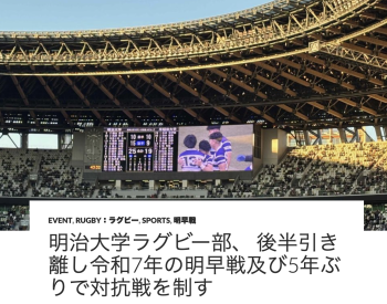 ラグビー明早戦に、今年は結果もさることながら例年の如くの顔ぶれで観戦出来たことに満足を。