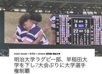 明治大学ラグビー部 7年ぶりの大学王座返り咲きであったり、記憶に生々しいところでは、先週末(2026/1/25)の