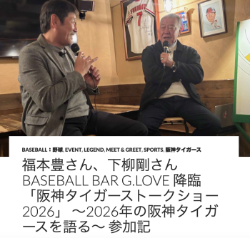 新年早々の遠足で甲子園球場傍の Baseball Bar G.LOVE を訪れ、野球少年時代の憧れ 福本豊さんとの対面適ったこと。